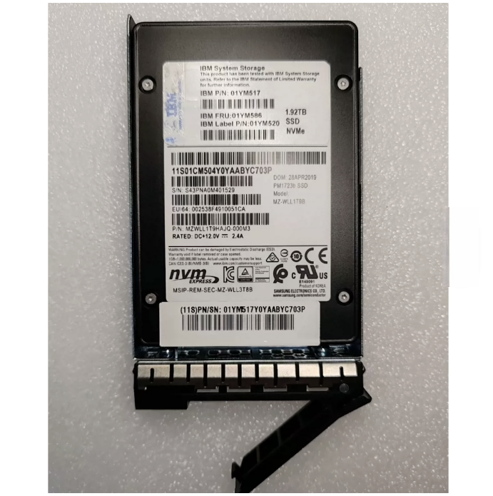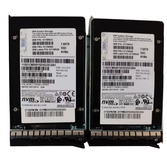 This is a customized and certified enterprise grade NVMe solid state drive with extremely high durability. Its core positioning is as the core storage medium for high-end storage systems (such as FlashSystem 9x00 series), used to carry the most demanding and write intensive critical enterprise workloads. The PM1723B in the model specifies its basic hardware platform, while 01YM541 and 01CM507 are exclusive FRU (field replaceable unit) part numbers used for IBM's internal spare parts, warranty, and service tracking.