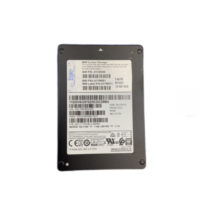 01YM909 is a high-performance enterprise grade NVMe solid-state drive that features advanced PCIe 4.0 interface and 2.5-inch U.2 form factor, providing 7.68TB of storage capacity. This hard drive is designed specifically for FlashSystem storage systems and is particularly compatible with the 01YM651 storage expansion shelf, providing excellent storage performance and reliability for critical business needs of enterprises.