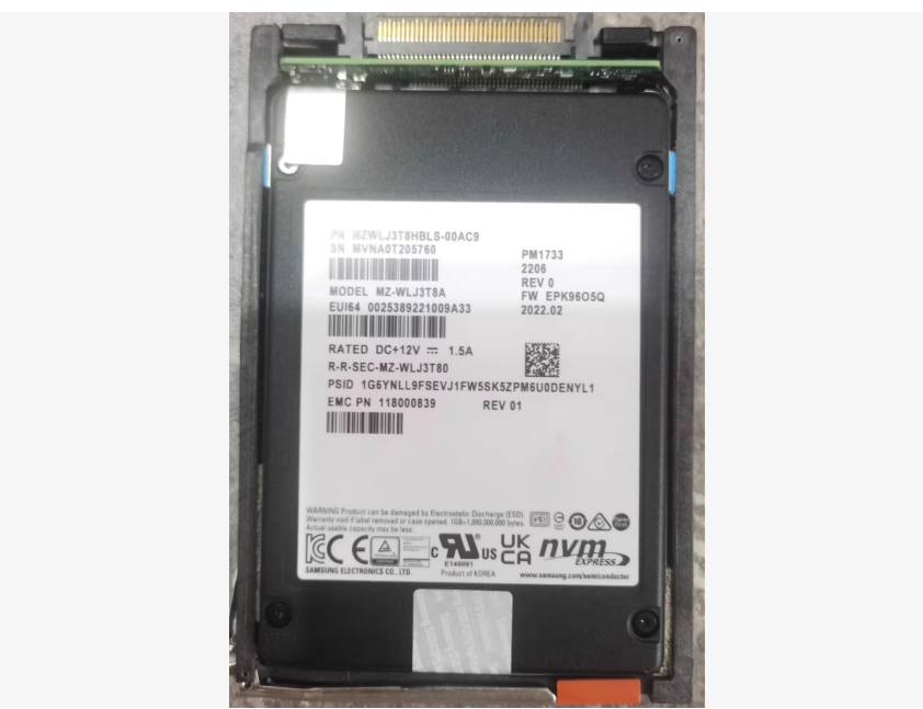 The EMC 118000740 (disk model PM1723B) is a high-performance enterprise-grade NVMe SSD with a capacity of 1.92TB. This product utilizes advanced 3D TLC NAND flash technology, based on the PCIe 4.0 interface and NVMe protocol, specifically optimized for enterprise hybrid workloads, achieving a perfect balance between performance, endurance, and cost-effectiveness.