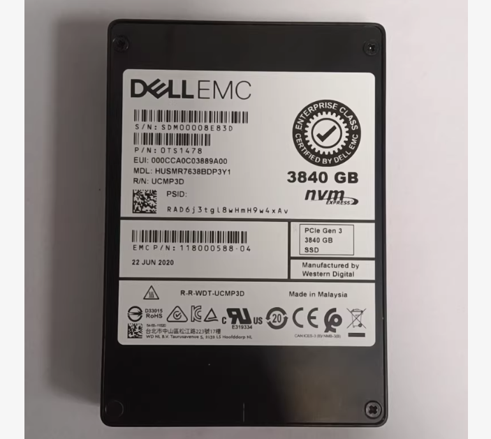 EMC 118000588-04 (part number: 005053504) is a high-performance enterprise grade NVMe solid state drive that utilizes Western Digital's advanced flash technology, with a capacity of 3.84TB. The product is based on PCIe 4.0 interface and NVMe protocol, designed specifically for high demand workloads in modern data centers, achieving outstanding performance in terms of performance, reliability, and energy efficiency.