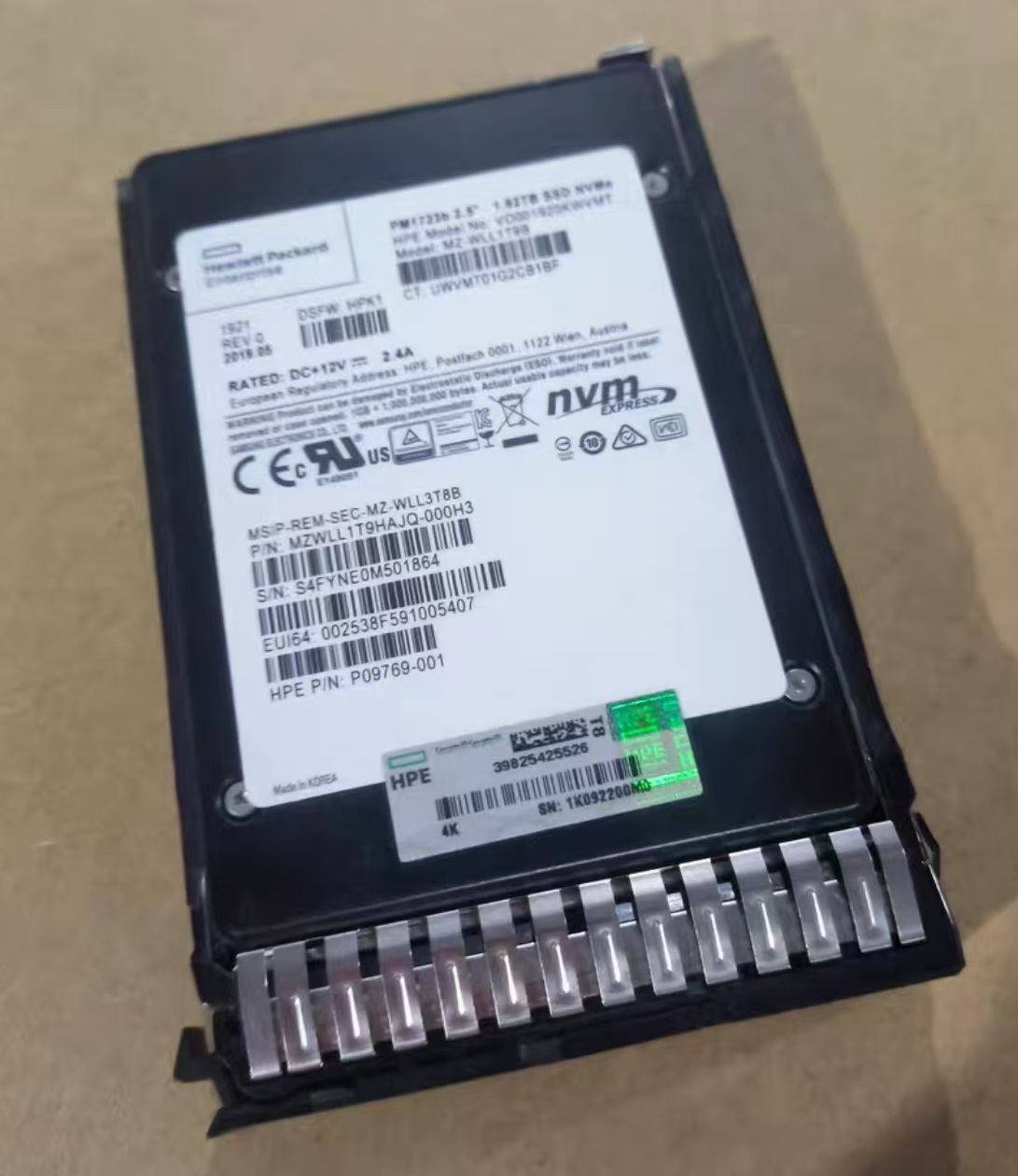 HPE P09769-001 (disk model: PM1723B) is a top performance NVMe solid-state drive launched by HPE (Hewlett Packard Enterprise). It adopts a PCIe HHHL (half height, half length) add-on card form and directly interacts with the CPU through PCIe 3.0 x4 channels. This model has a capacity of 1.92TB and is designed for extremely demanding read-write hybrid workloads, providing industry-leading low latency, high throughput, and excellent durability, suitable for scenarios such as high-performance computing (HPC), artificial intelligence (AI), and critical business databases.