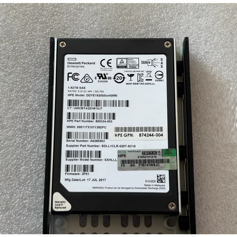 HP 850334-003 is an enterprise grade NVMe solid-state drive tailored by SanDisk (now part of Western Digital) for HPE. This model offers a capacity of 1.92TB and uses the mainstream 2.5-inch U.2 (SFF-8639) interface and NVMe protocol. It is positioned for mixed workloads, aiming to provide balanced performance, excellent reliability, and energy efficiency for various enterprise level applications, and is a reliable cornerstone for building modern data centers.
