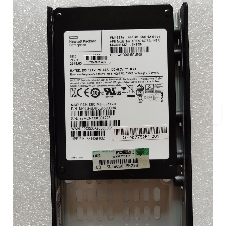 HPE 874429-001 (disk body model PM1635a) is a high-performance, low latency enterprise class NVMe solid state drive, belonging to the hybrid model in HPE NVMe product line. It is designed specifically for HPE ProLiant Gen9 and Gen10 server platforms, aiming to provide critical upgrades from SAS/SATA to high-performance NVMe storage for these platforms. This hard drive provides an excellent balance between read and write performance, making it suitable for enterprise level applications, virtualization environments, and database systems that require sustained high performance and exceptional reliability.