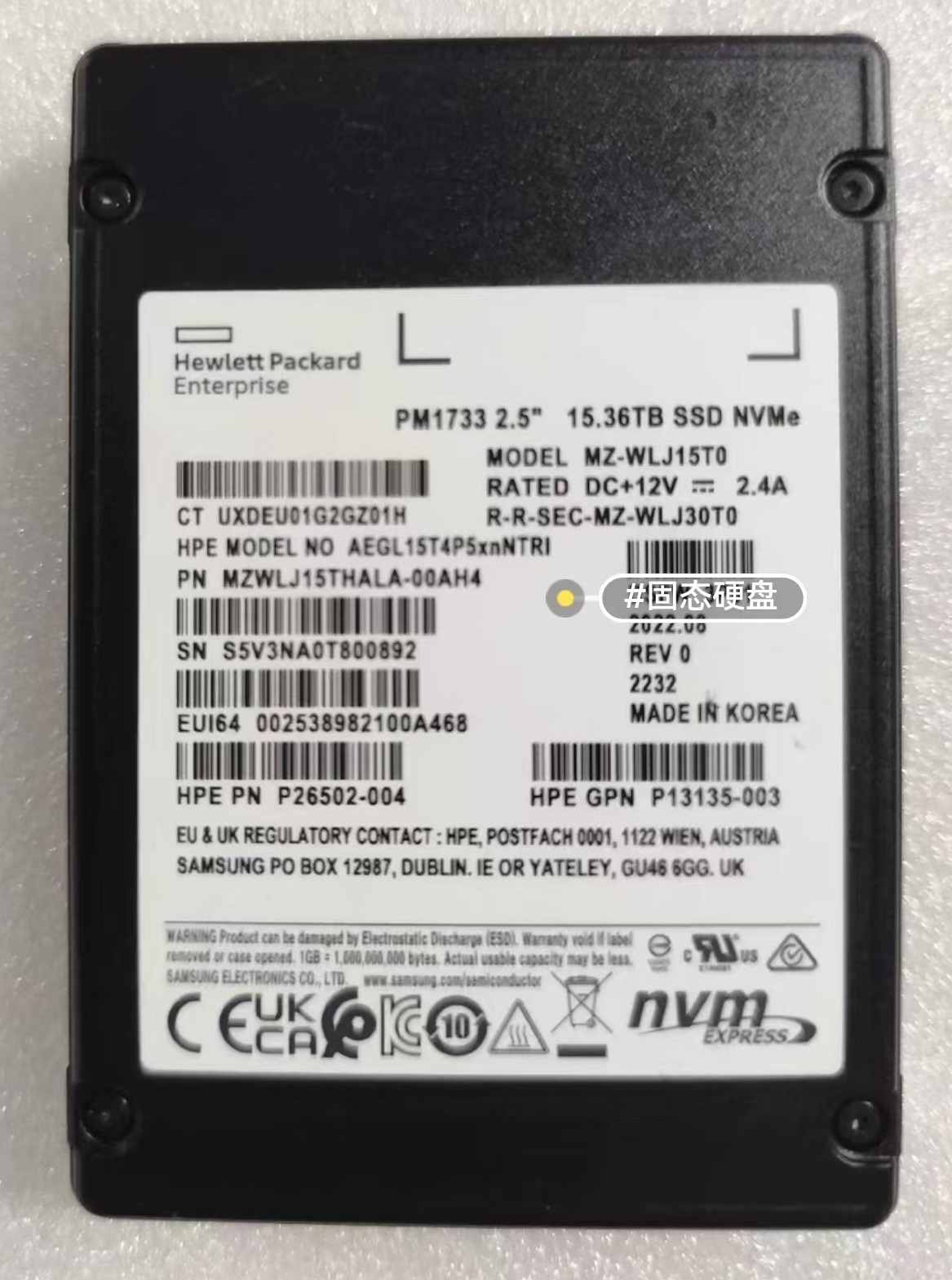 HPE P26502-004 (PM1733) 15.36TB NVMe SSD Enterprise Solid State Drive Product Introduction