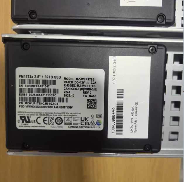 NETAPP 108-00856 (product model X4010A, disk body model PM1723B) is a high-performance enterprise level NVMe solid-state drive with a capacity of 1.92TB. The product uses advanced 3D TLC NAND flash technology and NVMe protocol, optimized for read intensive workloads, achieving a perfect balance between performance, durability, and cost-effectiveness, suitable for various enterprise level application scenarios.